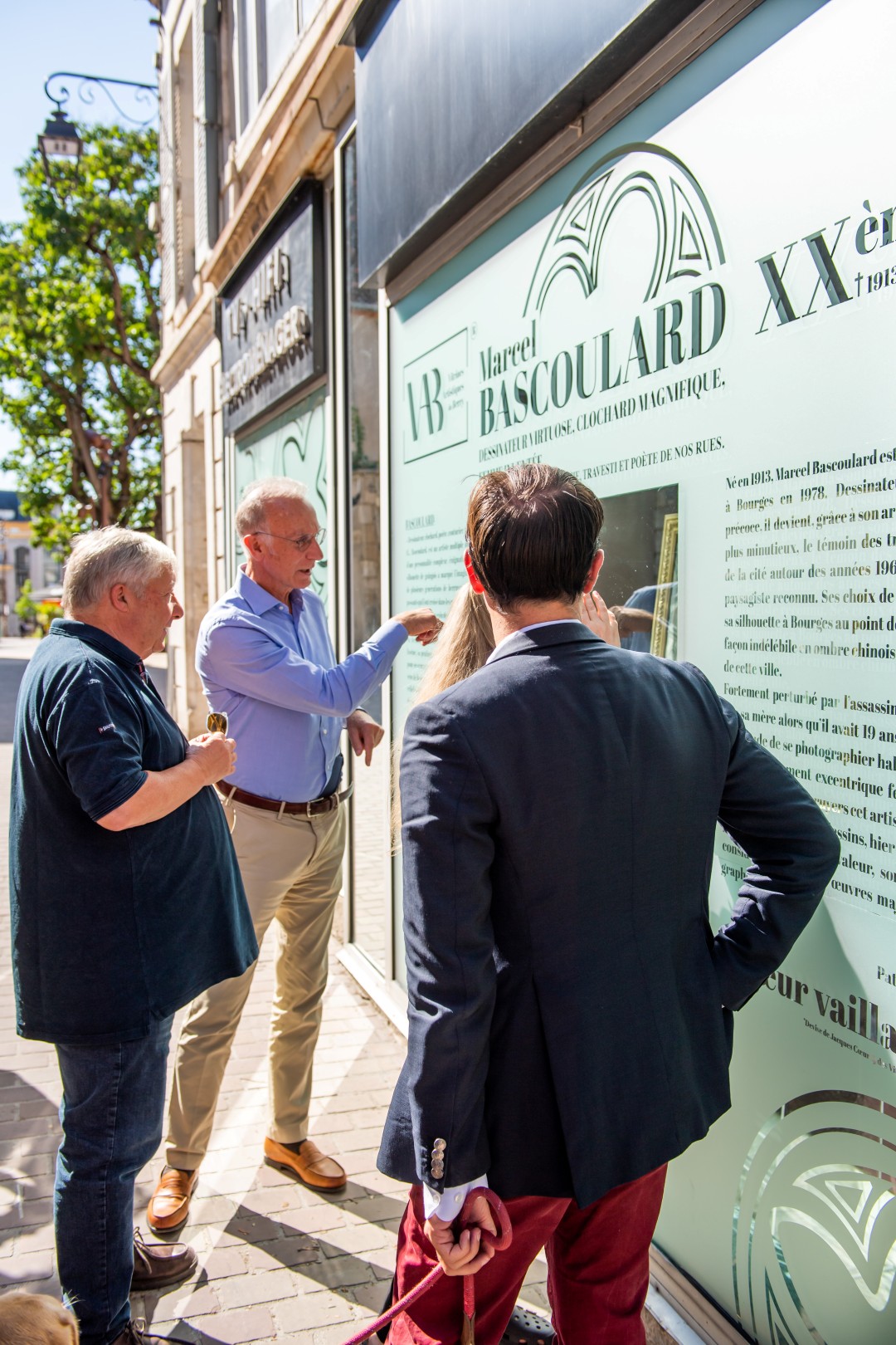 Nous transformons les vitrines vides du centre-ville de Bourges en expositions éphémères pour mettre en valeur notre patrimoine commun.